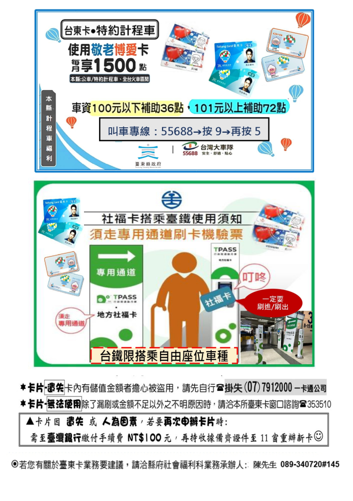 台東卡 ⬇ ➭ 敬老卡 ➭ 博愛卡 ➭ 陪伴卡 |