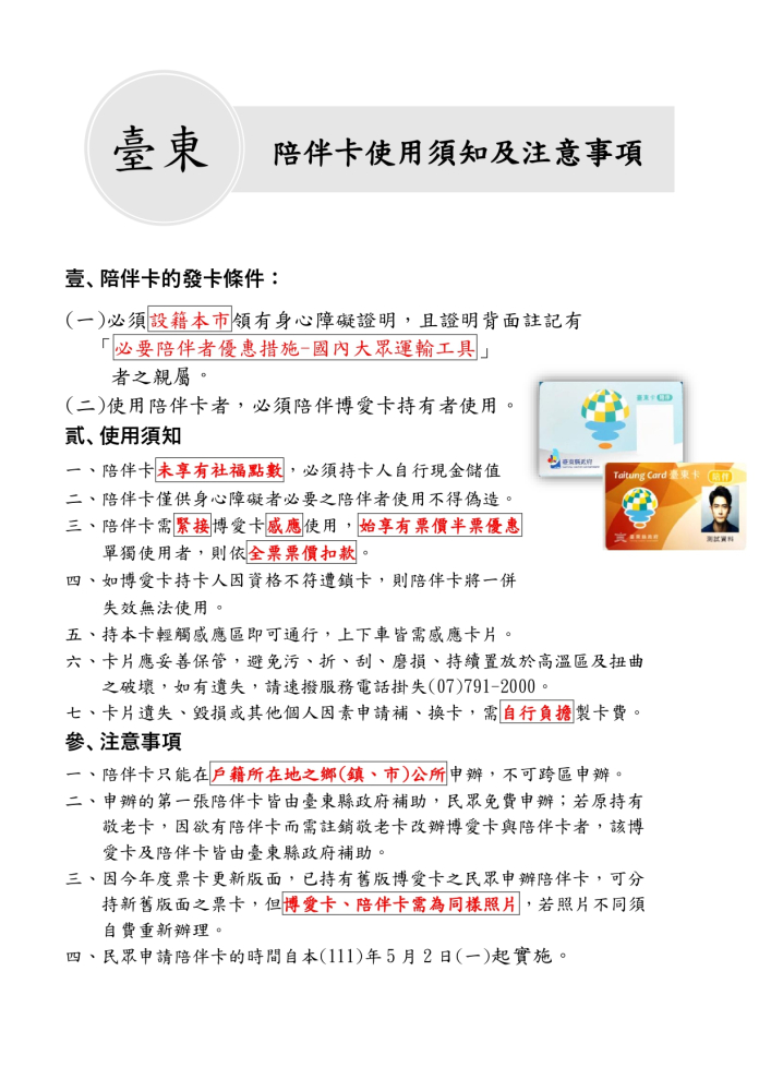 1.陪本卡僅供身心障礙者之必要陪伴者使用,不得偽造。