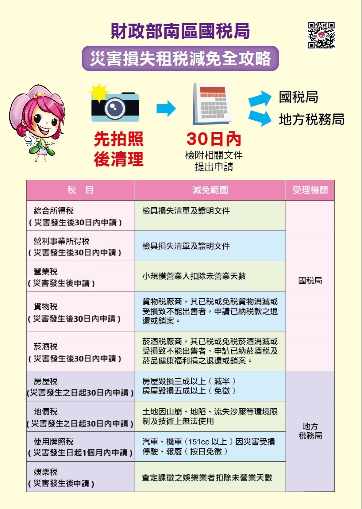 二、南區國稅局災害損失核備專區連結網址:https://reurl.cc/AqX4ne。