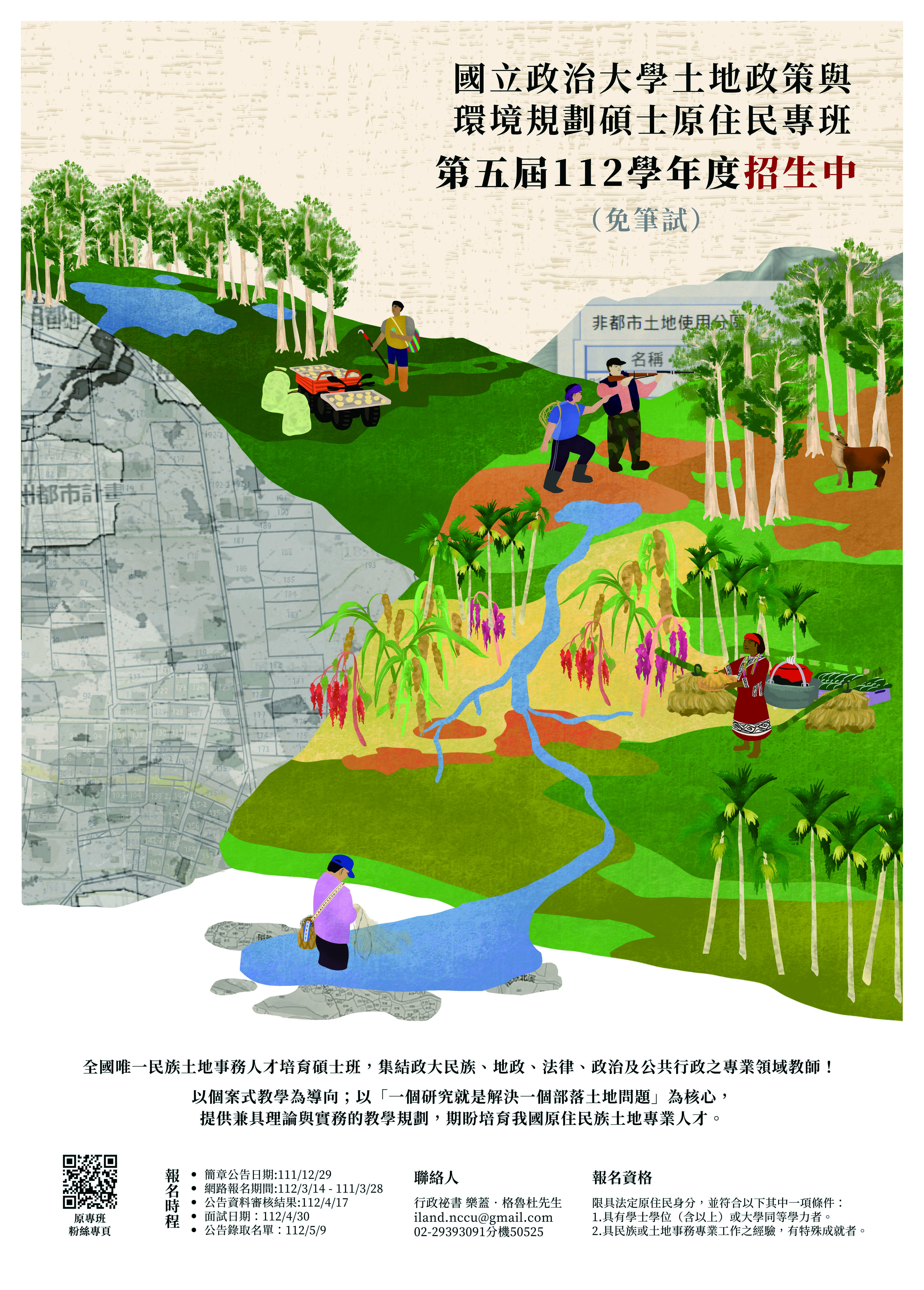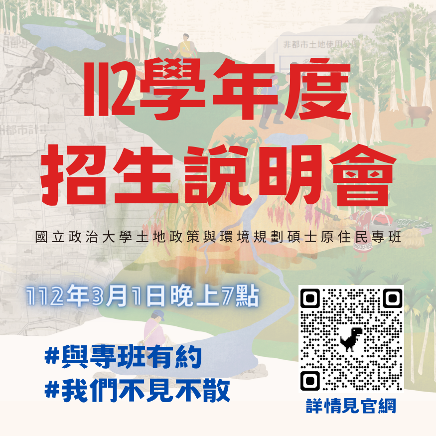 (一)  活動名稱:政大土地政策與環境規劃碩士原住民專班112學年度招生說明會。