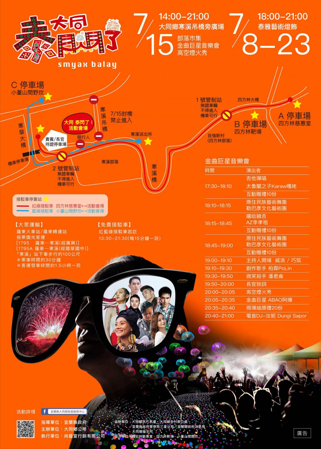 宜蘭縣大同鄉公所於112年7月8日至7月23日期間辦理「泰雅藝術燈飾暨夏日煙火音樂會活動」, 活動電子海報詳如附件,