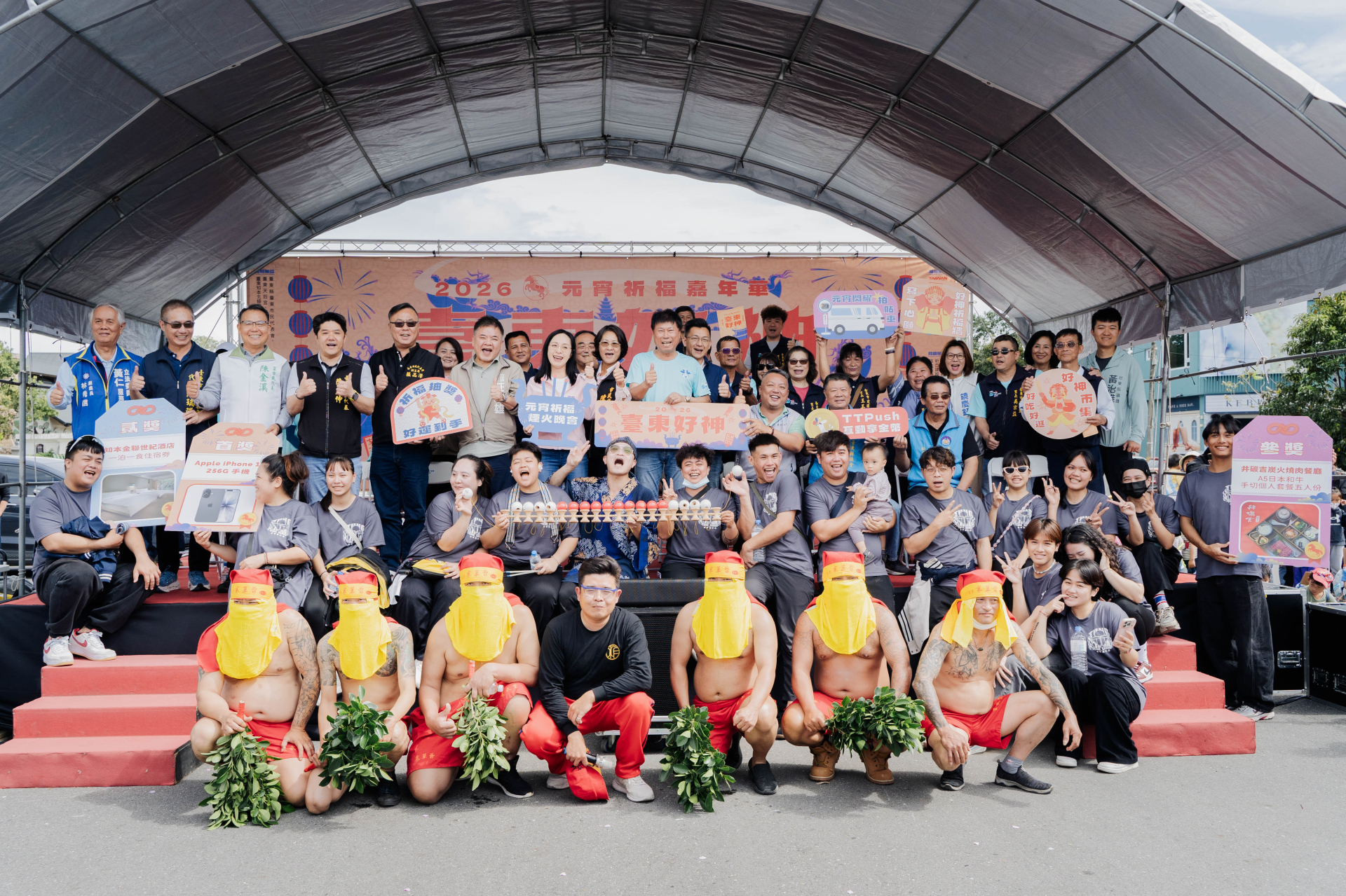 值得一提的是,晚會活動特別規劃的「好神祈福抽獎活動」,豐富好禮包括iPhone17 256G手機、知本金聯世紀酒店山水尊爵家庭房住宿券,以及井碳吉炭火燒肉餐廳A5日本和牛手切個人套餐五人餐券,民眾只需在記者會、晚會期間完成指定任務,即可至活動服務台領取抽獎券參加抽獎及TTPush金幣。現場同時設有元宵閃耀拍貼車,按讚市長臉書即可免費拍照,邀請民眾與親朋好友留下專屬元宵回憶、把好運帶回家。