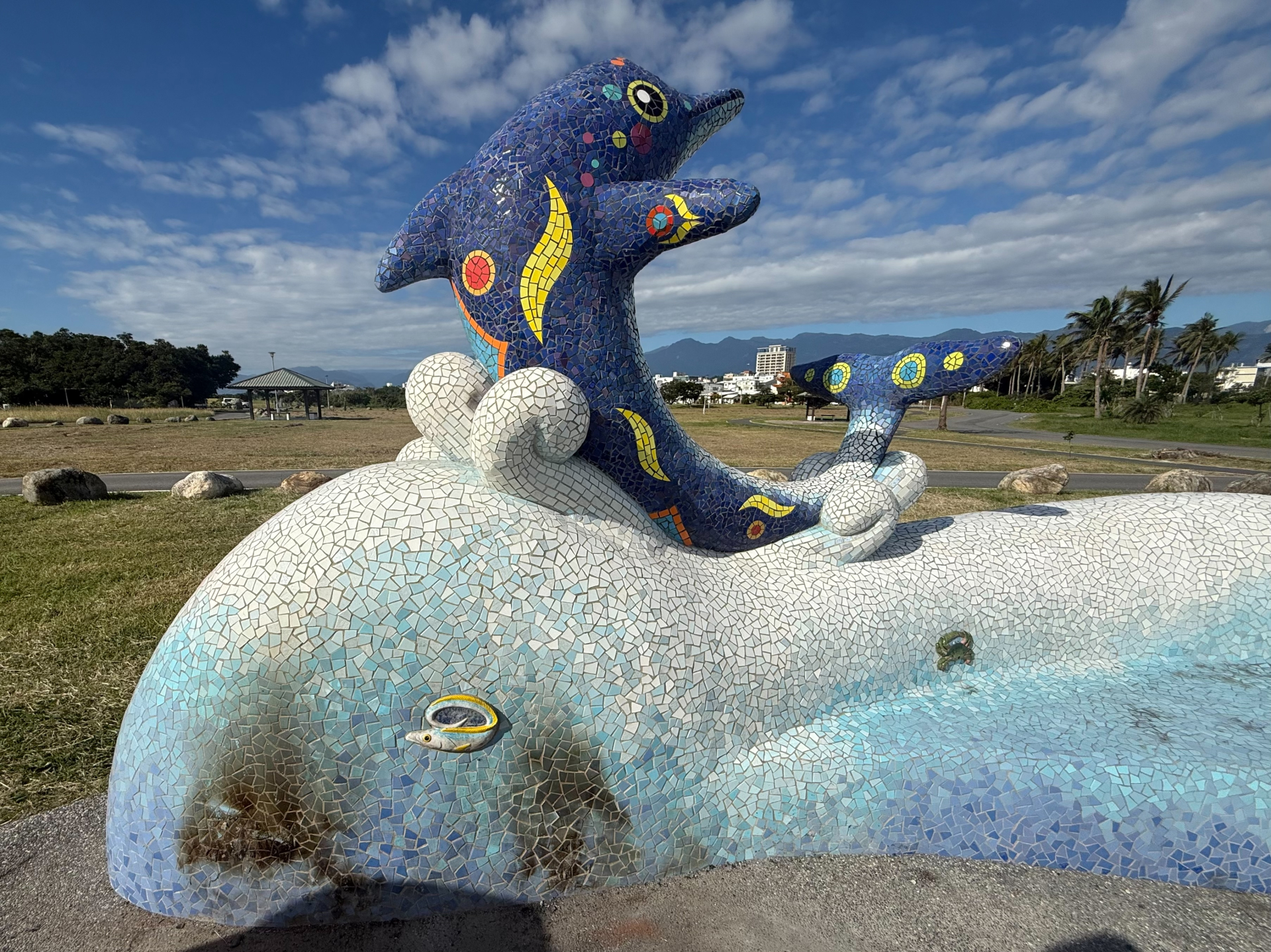 <p>臺東市海濱公園的海洋意象廣場自啟用以來,以鯨魚、海星等海洋生物意象深受市民與遊客喜愛,成為散步、遊憩與拍照的重要景點。然而日前有不明人士疑似在廣場施放煙火,除於現場留下垃圾外,也造成馬賽克磁磚破損及地面焦黑痕跡,影響市容觀感。</p>