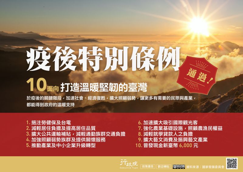 疫後特別條例 10面向打造溫暖堅韌的臺灣