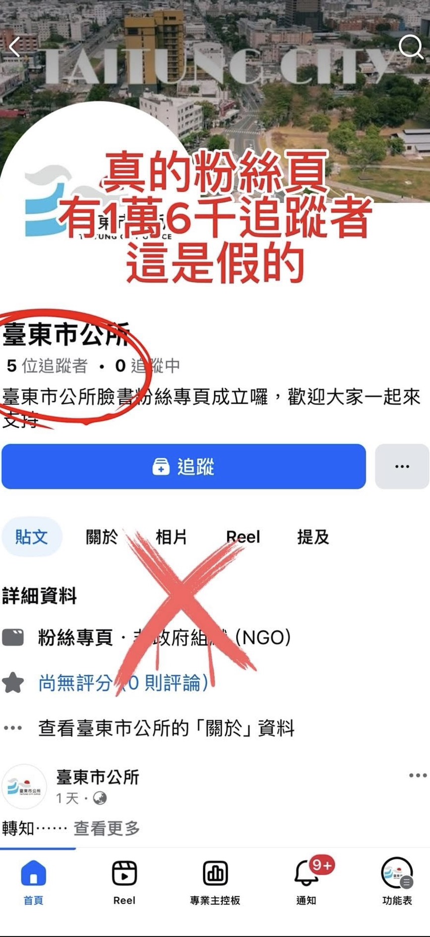 臺東市公所提醒市民注意假冒官方帳號詐騙 市長陳銘風籲切勿提供個資