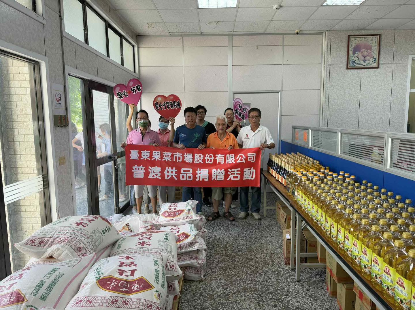 為落實公益關懷、傳遞社會溫暖,臺東市果菜市場結合市場攤商進行中元普渡愛心物資捐贈,將食品及生活必需品捐贈給社福團體、安養中心與部落文健站等共24個單位。此次捐助總計有 1,956公斤白米、294.6公升食用油品及各式米麵物資,由市長同時兼任果菜公司董事長陳銘風親自代表致贈。