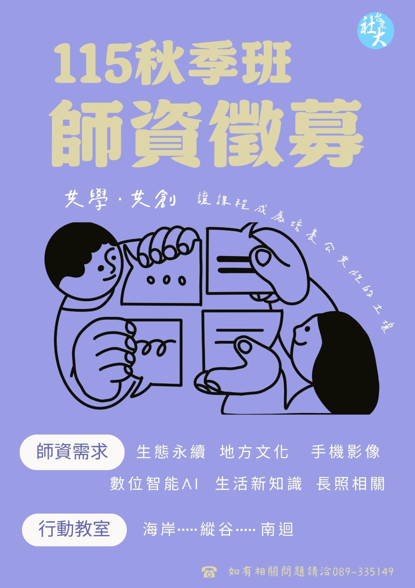 | 三、 | 依據社大辦學理念徵募115年秋季班師資暨課程需求如下: |