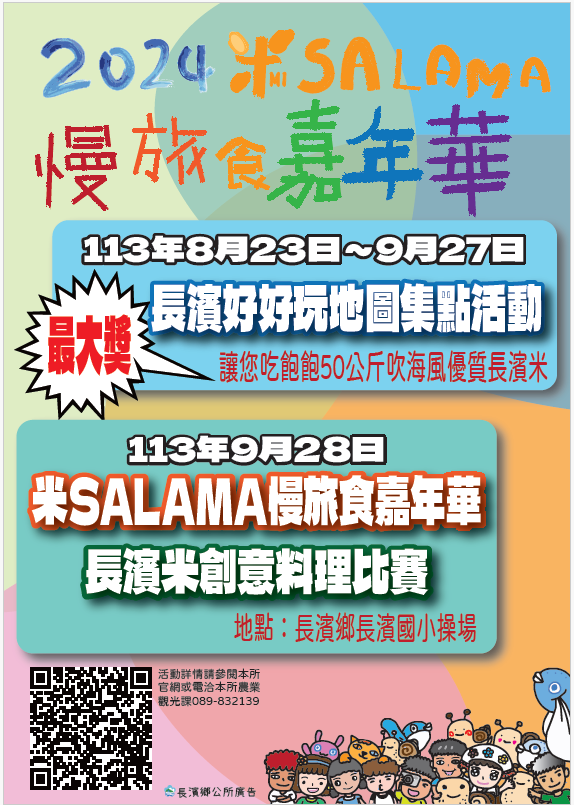 三、 相關活動資訊請參考長濱鄉公所官方網站(2024米SALAMA!長濱慢旅食嘉年華) https://www.changbin.gov.tw/circulatedview.php?typeid=1761&menu=29&circulated_id=4764