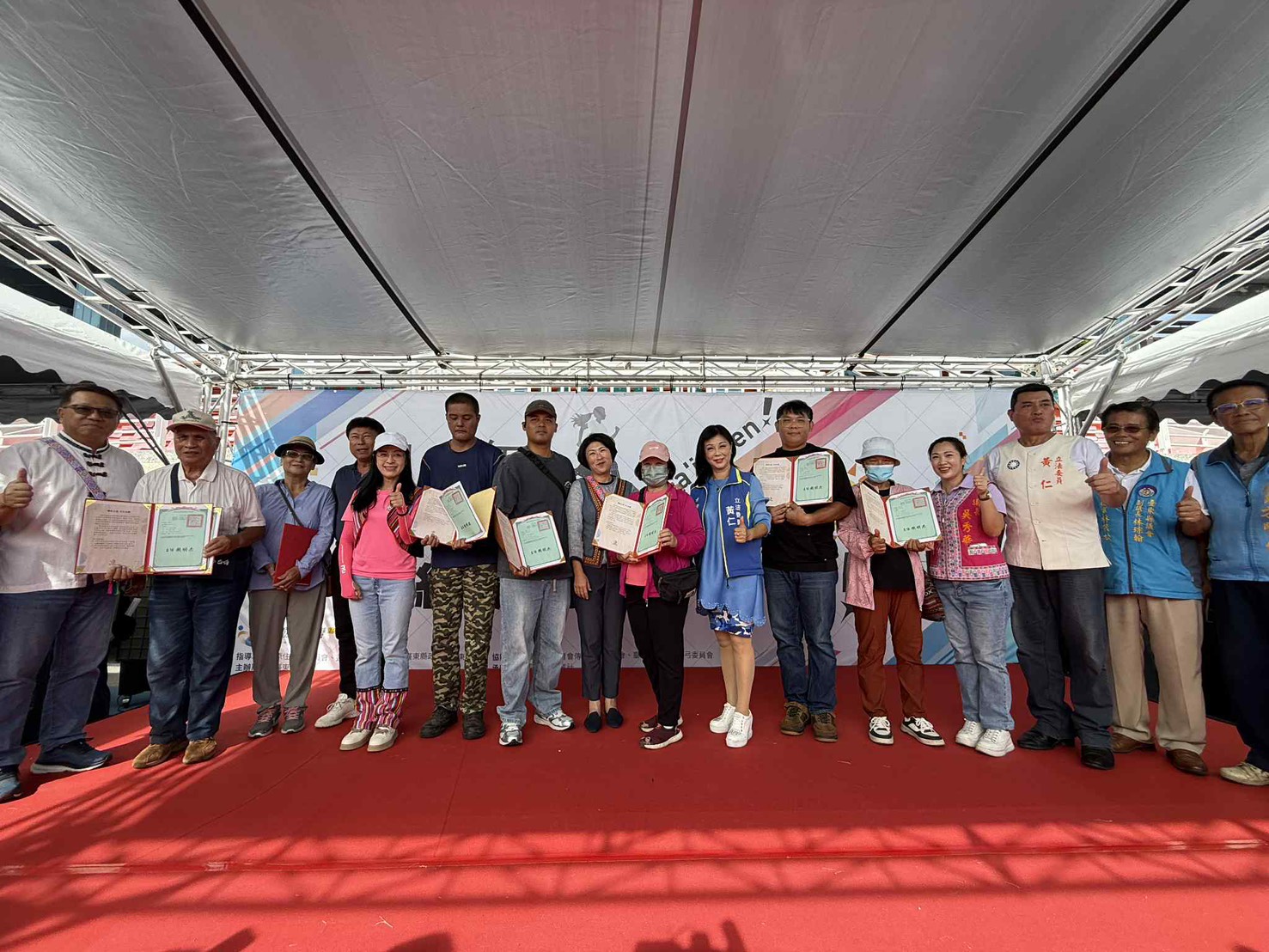 長官們到場同樂,杜張梅莊副主委、縣長饒慶鈴和陳市長一起合照